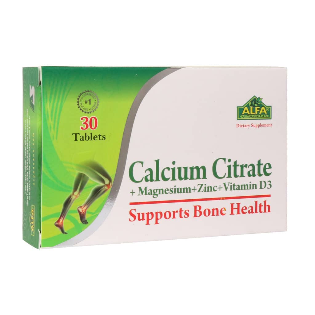 قرص کلسیم سیترات منیزیم زینک و ویتامین D3 آلفا ویتامینز مناسب تقویت سلامت استخوانها است. این محصول با داشتن مواد مغذی مختلف علاوه بر تقویت سیستم ایمنی، از گرفتگی عضلات جلوگیری میکند.