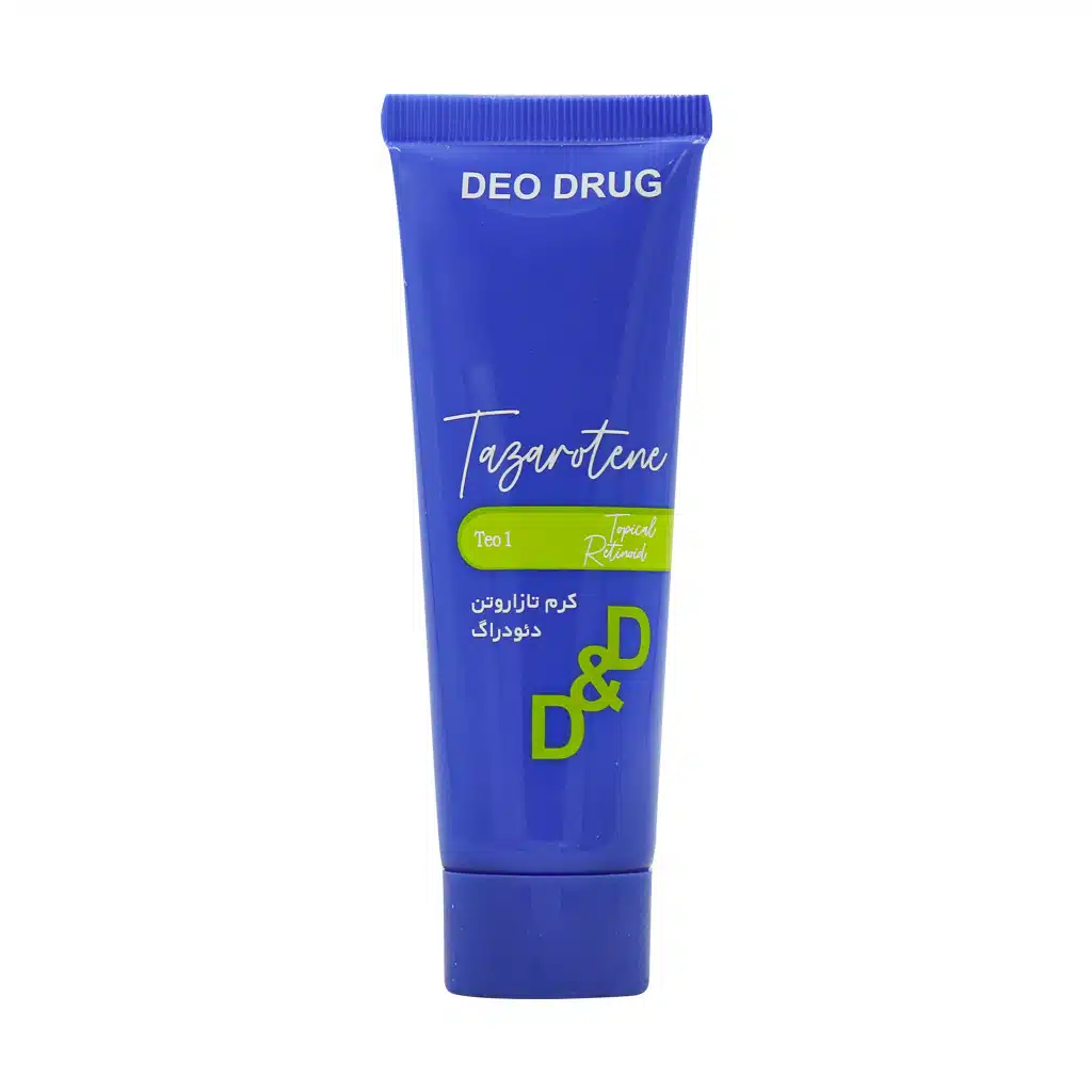 کرم تازاروتن دئودراگ حاوی تازاروتن یک رتینوئید (مشتقات ویتامین A) است که در درمان موضعی انواع آکنه، لکها و تیرگی پوست، پلاک پسوریازیس و آسیب و پیری پوست ناشی از آفتاب کاربرد دارد. این کرم با تنظیم چرخه رشد سلولهای پوستی، لایه برداری ملایم و کاهش انسداد منافذ به بهبود بافت و ظاهر پوست کمک میکند. تازاروتن یک پیش دارو است که در پوست به فرم فعال خود یعنی اسید تازاروتنیک تبدیل میشود.