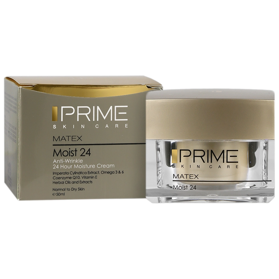 کرم مرطوب کننده ۲۴ ساعته پرایم محصولی با فرمولاسیونی کاملا تخصصی و متشکل از عصاره‌های گیاهی و روغن های طبیعی است که میزان رطوبت پوست را افزایش می‌دهد. این محصول در درمان بسیاری از مشکلات پوستی از قبیل خشکی، اگزما، خارش و پوسته پوسته شدن پوست موثر است. این محصول با بهره گیری همزمان از ترکیبات آبرسان و مغذی قادر است ضمن مرطوب نگه داشتن پوست تا ۲۴ ساعت از پیری زودرس و بروز چین و چروک پیشگیری نماید.